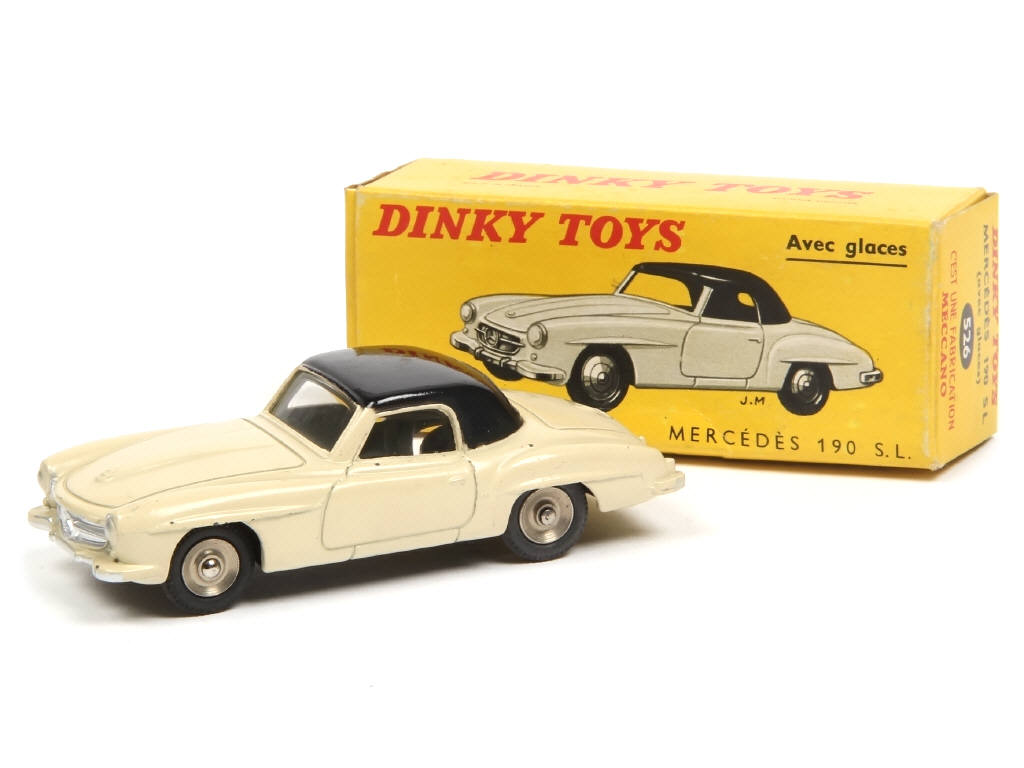 DINKY TOYS (FRANCE) 526 MERCEDES 190 SL (version avec vitres & jantes concaves) ivoire, toit noir