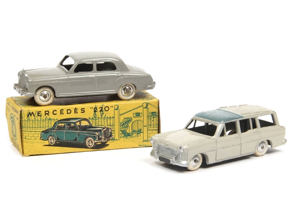 comprend : MERCEDES 220 (boite en état 'b') & SIMCA MARLY (modèle original - frottements sur les arêtes de caisse & traces d'humidité) - on y retrouve les marques : QUIRALU & C.I.J