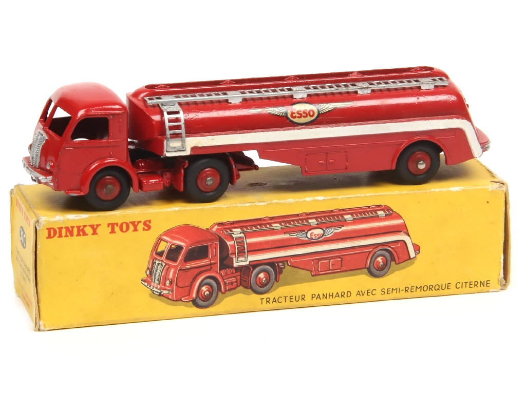 DINKY TOYS (FRANCE) 32C PANHARD Semi-remorque citerne 'ESSO' (version avec jantes convexes) rouge (décalques 'ailes moyennes')