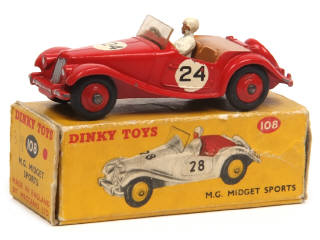 DINKY TOYS (GB) 108 MG MIDGET Sports rouge, intérieur brun, jantes rouges