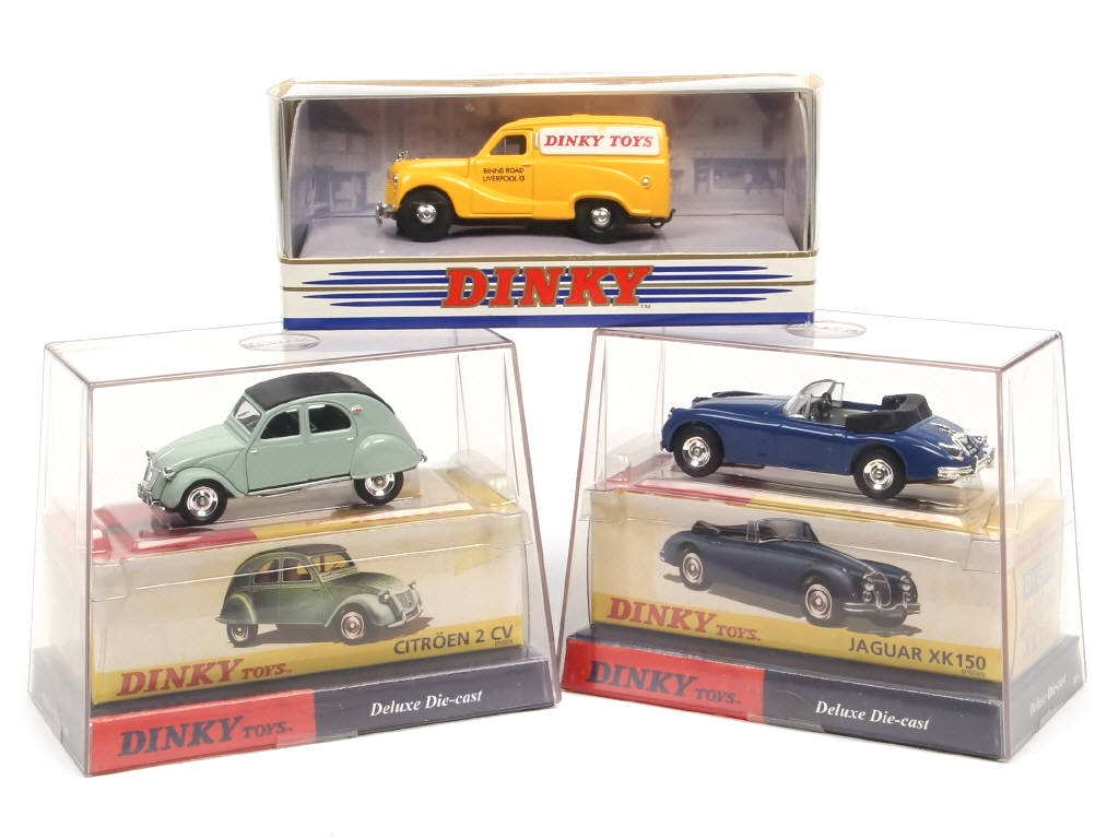 comprend : CITROEN 2CV AZLM 1957, JAGUAR XK150 Roadster & AUSTIN A40 1953 'DINKY TOYS'