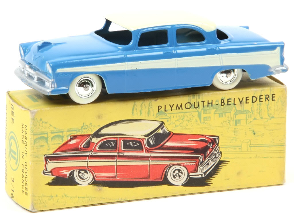 C.I.J. (FRANCE) 3/16 PLYMOUTH BELVEDERE bleu & crème