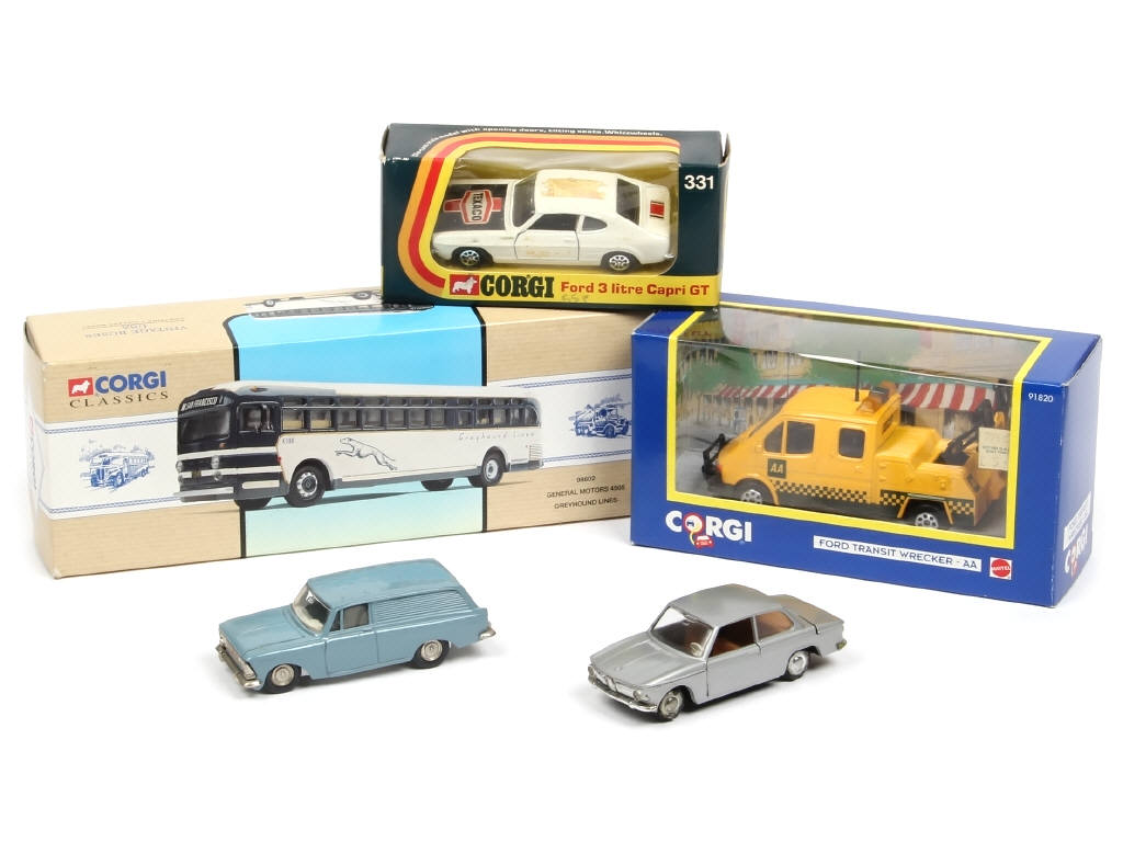 comprend notamment les modèles : BMW & FORD (dont un avec décalques manquants) - on y retrouve les marques : CORGI TOYS & SABLON - un exemplaire avec défauts dans la peinture de la carrosserie - boites en état 'b' (2 modèles sans)