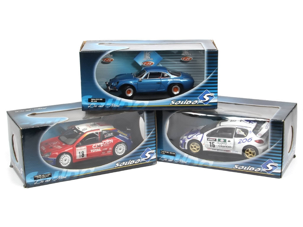 échelle 1/18ème - comprend les modèles : ALPINE A110 1800, PEUGEOT 206 WRC 1999/2000 & CITROEN XSARA WRC MONTE CARLO 2003