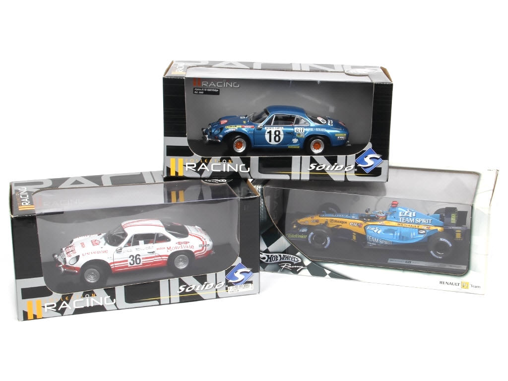 échelle 1/18ème - comprend les modèles : A110 1800 & 1800 TDF 2007 - on y joint une F1 R25 (F. ALONSO) de la marque MATTEL