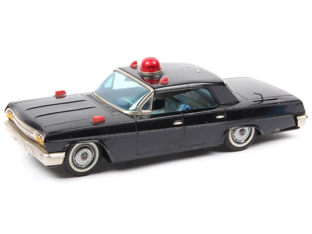 longueur : 36 cm - avec moteur à piles & gyrophare lumineux (à revoir) - quelques petits accessoires cassés & manquants