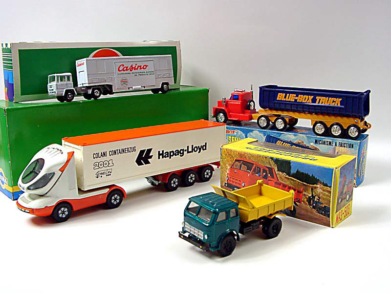 BLUE-BOX (SINGAPOUR) 77806 DODGE Semi-benne chantier 'BLUE-BOX TRUCK' rouge, bleu & ocre