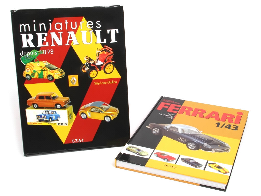 comprend : 'MINIATURES RENAULT DEPUIS 1898' & 'FERRARI au 1/43EME' - on y retrouve les éditions : DU MAY & ETAI - couvertures légèrement abîmées par endroits