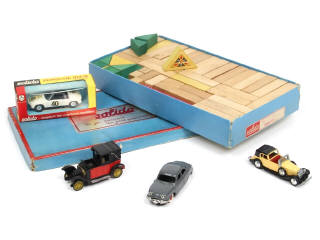 comprend : VOLKSWAGEN/PORSCHE 914/6 (boite en état 'b'), PANHARD DYNA, HISPANO SUIZA 1934 & RENAULT 1917 'TAXI DE LA MARNE' - on y retrouve notamment les marques : SOLIDO, JMK & NOREV - avec petits manques & parties cassées - on y joint un jeu de construction & une boite vide SOLIDO référence 4 en état 'c'