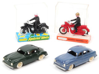 comprend : RENAULT FREGATE & FORD VEDETTE - on y joint une moto de police (état 'A'-'b' avec antenne cassée) & de pompiers (état 'A'-'b')