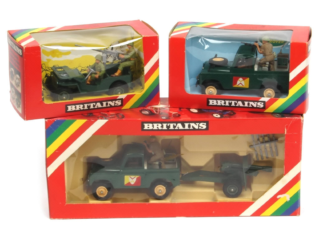BRITAINS (GB) Ensemble de 3 voitures militaires & un canon