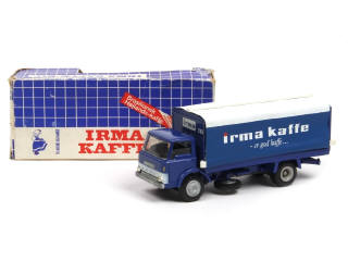 TEKNO (DANEMARK) FORD D 800 Plateau brasseur bâché 'IRMA KAFFE' bleu foncé & blanc