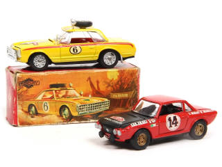 comprend : MERCEDES 230 SL 'EAST AFRICAN SAFARI' & LANCIA FULVIA coupé (plancher avec trou taraudé à un endroit - sans boite)