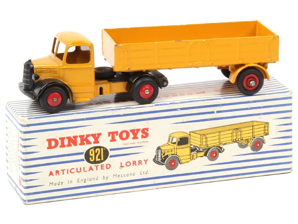 DINKY TOYS (GB) 921 BEDFORD Semi-remorque plateau à ridelles jaune d'or, ailes noires & jantes rouges