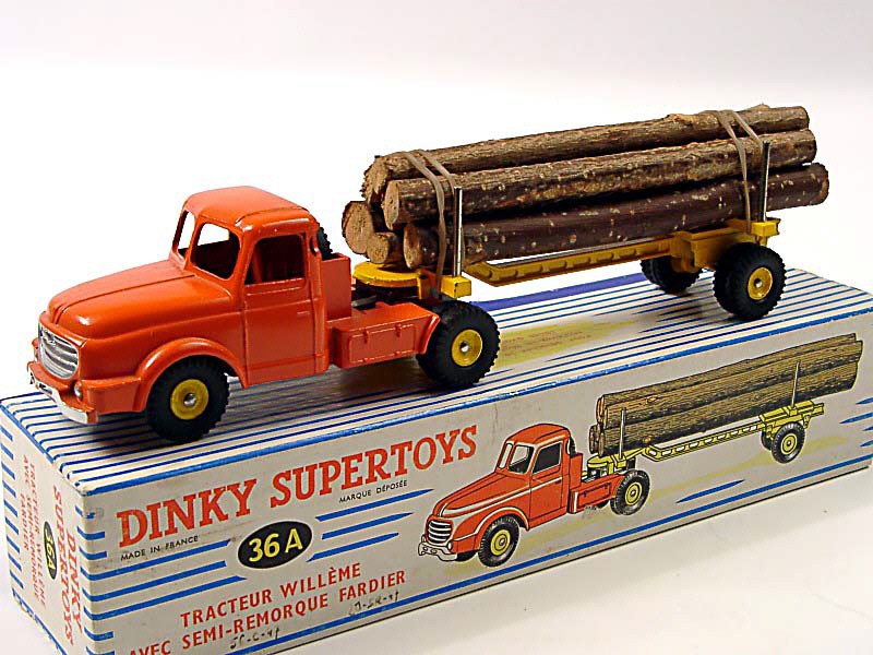 DINKY TOYS (FRANCE) 897 WILLEME Fardier (version avec jantes concaves & remorque non ajourée) orange & jaune