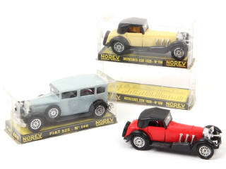 comprend : MERCEDES SSK (2 couleurs différentes) & FIAT 525 - quelques accrocs & déformations sur les boites