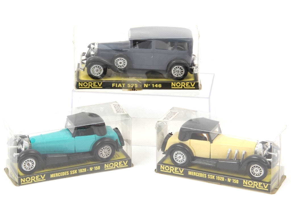 comprend : MERCEDES SSK (2 couleurs différentes) & FIAT 525 - quelques accrocs & déformations sur les boites