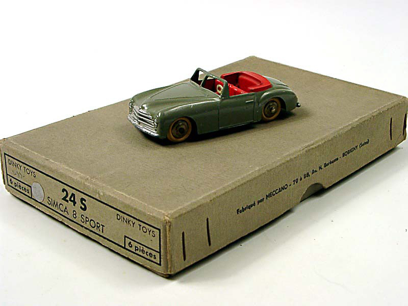 DINKY TOYS (FRANCE) 24S SIMCA 8 SPORT (version avec pare-brise mince & jantes chromées) gris mastic, intérieur rouge