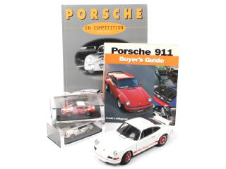 différentes échelles - on y retrouve les marques : SPARK & AUTO ART (sans boîte, rétroviseur à refixer) - on y joint 2 ouvrages se rapportant à la marque (état 'b', langues différentes, un exemplaire froissé)