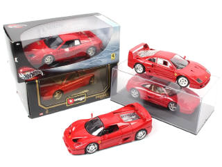 échelle 1/18ème - sous boîte vitrine - création artisanale avec la volonté de réaliser par le souci du moindre détails le véritable modèle à l'échelle 1 - on y joint 4 FERRARI (348 TB, F 512, F40 & F50) des marques MATTEL & BBURAGO (2 exemplaires en boîte état 'b' avec accrocs & blisters plus ou moins déchirés)
