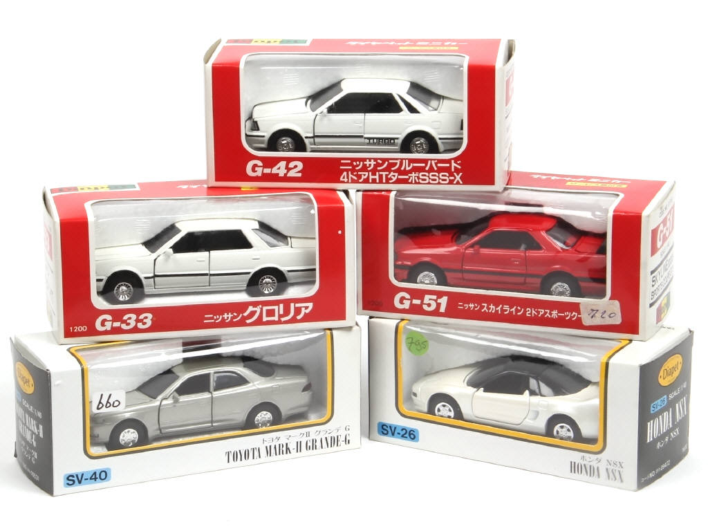 comprend : TOYOTA MARK II, HONDA NSX, NISSAN BLUEBIRD, SKYLINE SPORTS coupé & GLORIA