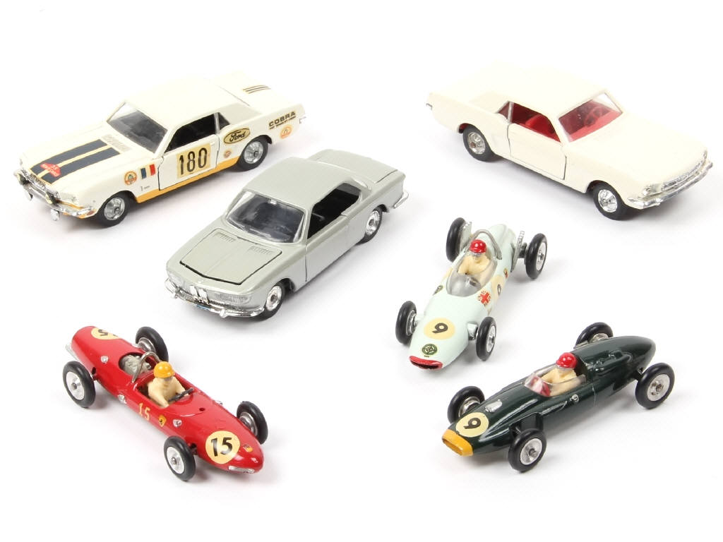 miniatures reproduisant les modèles : BMW, COOPER, FORD (2 exemplaires, un système électrique à revoir), BRM & FERRARI - détails de peinture & quelques décalques ajoutés - petits manques