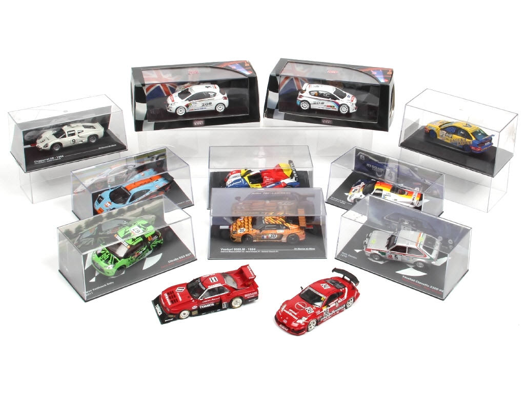 plusieurs modèles Le Mans - véhicules vendus en kiosque - comprend notamment les modèles : RONDEAU, CITROEN, RENAULT, CHAPARRAL, VENTURI & VAUXHALL - possibilité de petits éléments cassés - quelques couvercles de boites en état 'c' de modèles sans