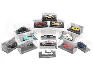véhicules vendus en kiosque - comprend notamment les modèles : PANHARD, SOVAM, RENAULT, JIDE, VENTURI & SALMSON - possibilité de petits éléments cassés - quelques fêlures sur certains couvercles de boites
