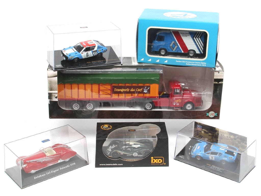 comprend : DELAHAYE FIGONI FALASCHI 1938, RENAULT 17 GORDINI rallye du Maroc 1974, ALPINE RENAULT A310 Tour de Corse 1974, BENTLEY EXP SPEED Le Mans 2001, SAVIEM SG2 assistance course ALPINE rallye Monte Carlo 1973 & WILLEME LC610 'TRANSPORTS DU CERF' (un rétroviseur cassé à recoller - manque cale de boite)