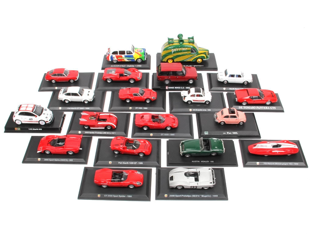 modèles vendus en kiosque - comprend les modèles : RANGE ROVER, ALFA ROMEO, AUSTIN HEALEY, FIAT & HOTCHKISS - possibilité de quelques petits éléments cassés & manquants - carrosseries poussièreuses