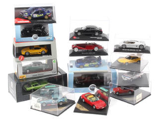 miniatures reproduisant notamment les modèles : NISSAN, SUBARU (un exemplaire en série limitée), DAIMLER, JAGUAR & HONDA - on y retrouve notamment les marques : OXFORD, MAISTO, J COLLECTION, VITESSE & MATRIX - quelques fêlures sur certaines boîtes (manque certaines vis de fixation)