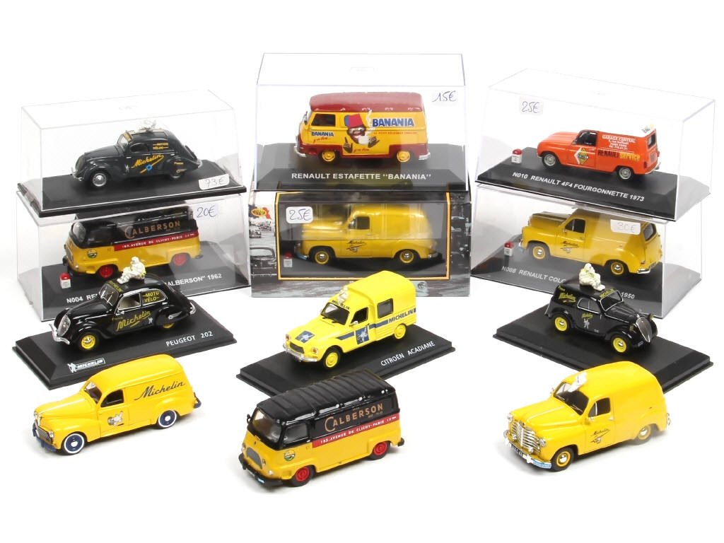 comprend notamment les publicités : MICHELIN (principalement), CALBERSON & BANANIA - on y retrouve notamment les marques : NOLTALGIE & SOLIDO - 6 modèles sans couvercle de boite