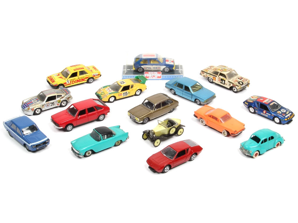comprend les modèles : CITROEN, RENAULT, PEUGEOT, LIGIER, PORSCHE & OPEL - petits manques, parties cassées & déformées - traces d'oxydation & carrosseries encrassées