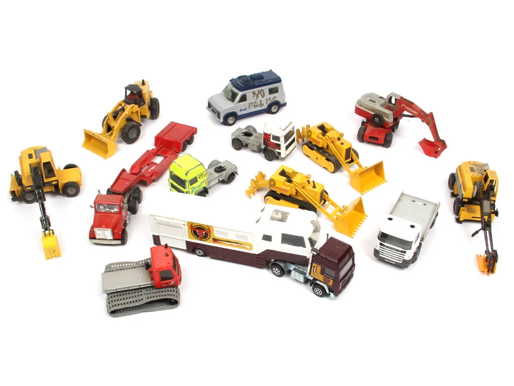 on y retrouve notamment les marques : MAJORETTE (principalement) & SOLIDO - avec manques & parties cassées - quelques traces d'oxydation