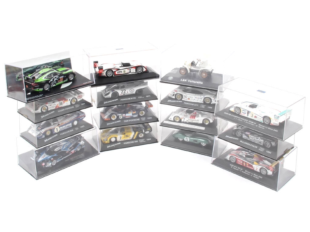 distribués en kiosque - miniatures reproduisant notamment les modèles : ASTON MARTIN, PORSCHE, AUDI, Mc LAREN & JAGUAR - un exemplaire de la marque IXO