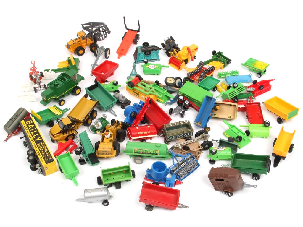 différentes petites échelles - on y retrouve notamment les marques : ERTL, WIKING, JOUEF, NZG, MATCHBOX, MAJORETTE & CORGI JUNIOR - avec manques & parties cassées