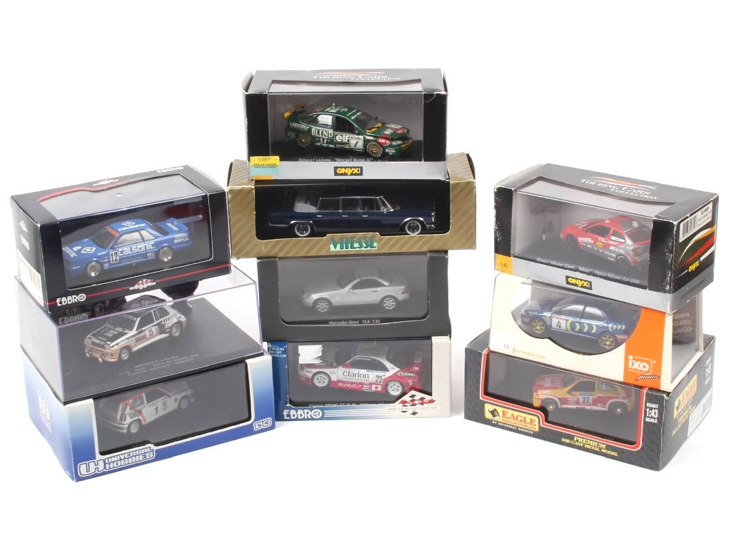 miniatures reproduisant notamment les modèles : RENAULT, MERCEDES & SUBARU - on y retrouve notamment les marques : EAGLE, VITESSE, IXO & EBBRO - quelques accrocs sur les suremballages
