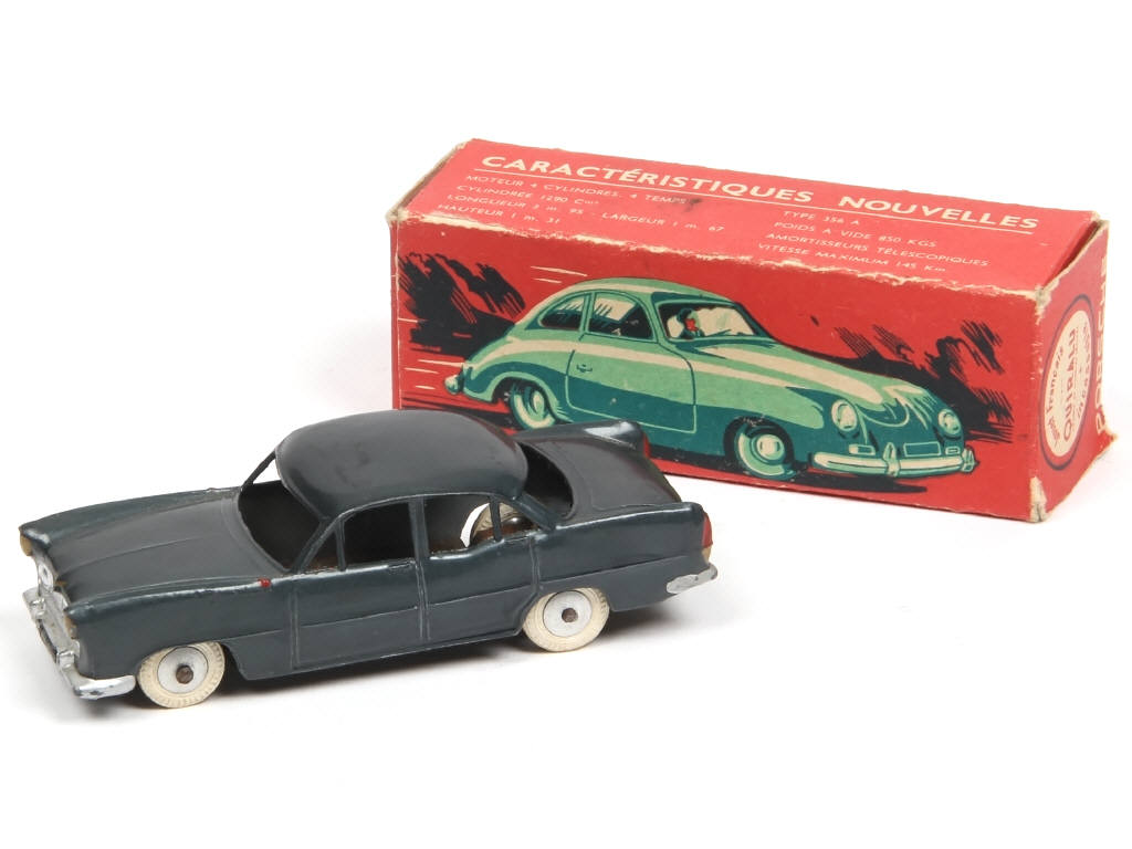 modèle original - coulures de peinture par endroits (d'usine) - quelques éclats sur leqs pare-chocs - pneus séchés & traces d'oxydation - on y joint une boite vide de PORSCHE 356A en état 'b' avec accrocs & une étiquette collée sur une face