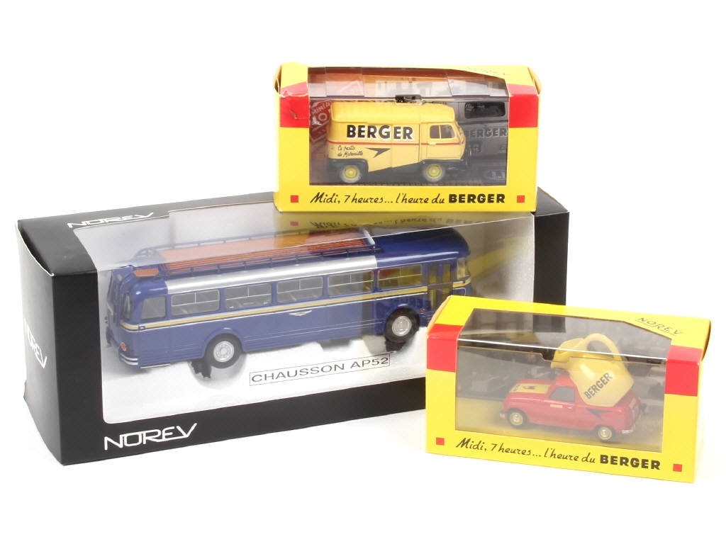 comprend : RENAULT ESTAFETTE 'BERGER', 4L 'BERGER' & CHAUSSON autocar de voyage - quelques accrocs sur les boîtes