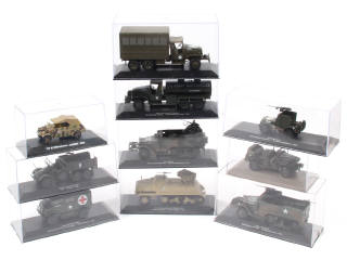 vendus en kiosque - miniatures reproduisant notamment les modèles : GMC, VOLKSWAGEN, OPEL & JEEP - quelques fêlures sur les boîtes