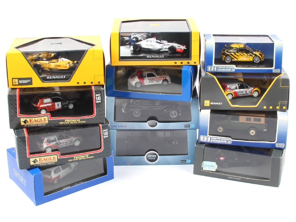 miniatures reproduisant notamment les modèles : HUMBER, DAIMLER, RENAULT & LAND ROVER - on y retrouve les marques : NOREV, UNIVERSAL HOBBIES & EAGLE