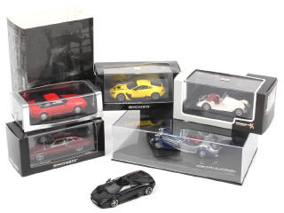 miniatures reproduisant les modèles : ASTON MARTIN (2 exemplaires différents), LAMBORGHINI (sans boîte avec un rétroviseur cassé), MERCURY, HORCH & MORGAN - on y retrouve les marques : MINICHAMPS, PREMIUM X & SPARK
