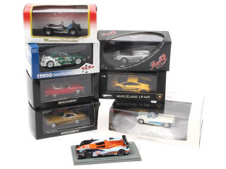 miniatures reproduisant les modèles : VOLVO, LAMBORGHINI, NISSAN, CATERHAM, SPYKER, A.C, AUTO-UNION & LA SALLE - on y retrouve les marques : EBBRO, BANG, MATTEL, KYOSHO, SPARK (manque une vis) & MINICHAMPS