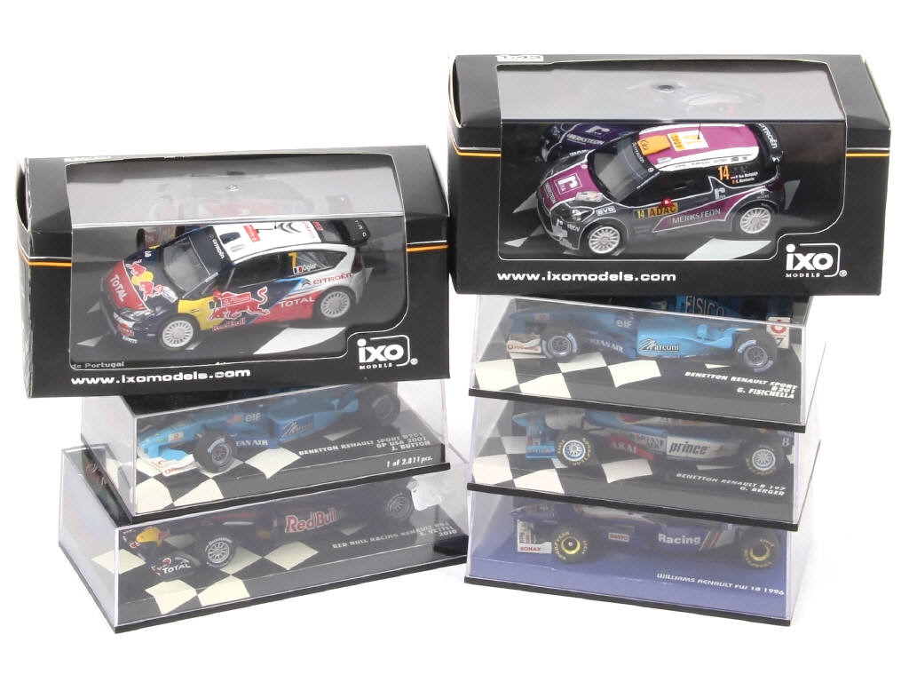 miniatures reproduisant les modèles : CITROËN, BENETTON RENAULT, RED BULL RENAULT & WILLIAMS RENAULT (3 exemplaires différents) - on y retrouve notamment les marques : IXO & MINICHAMPS