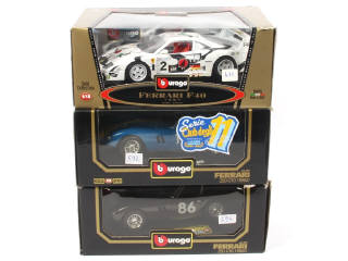 échelle 1/18ème - comprend les modèles : F40 & 250 GTO (2 exemplaires différents) - transformations artisanales réalisées par une ou plusieurs entreprises en séries limitées - quelques accrocs sur les boîtes (une en état 'c') - BELLES REALISATIONS !