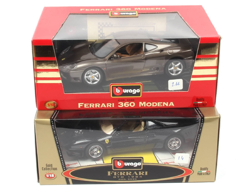 échelle 1/18ème - comprend les modèles : 360 MODENA & GTO - transformations artisanales réalisées par une ou plusieurs entreprises en séries limitées - quelques accrocs sur les boîtes - BELLES REALISATIONS !
