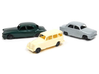 échelle 1/32ème - comprend : RENAULT DAUPHINOISE, FREGATE (quelques petits défauts dans la carrosserie à l'arrière du modèle) & SIMCA ARONDE