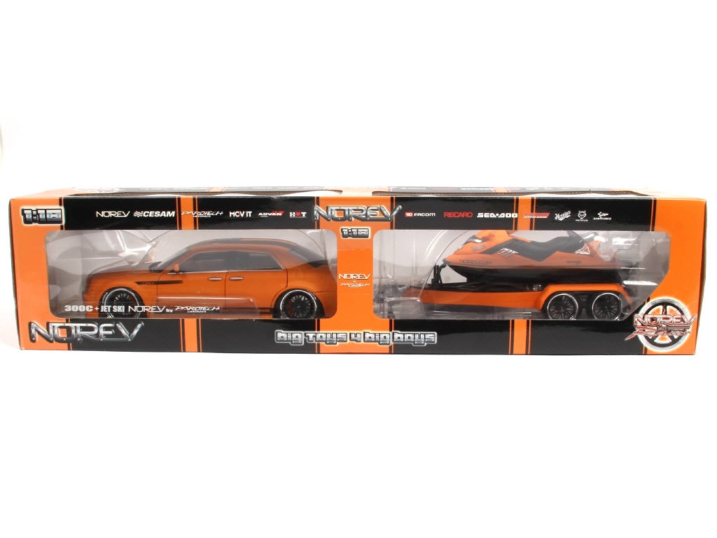 NOREV (FRANCE) 189406 CHRYSLER C300 avec jet-ski sur remorque orange & noir
