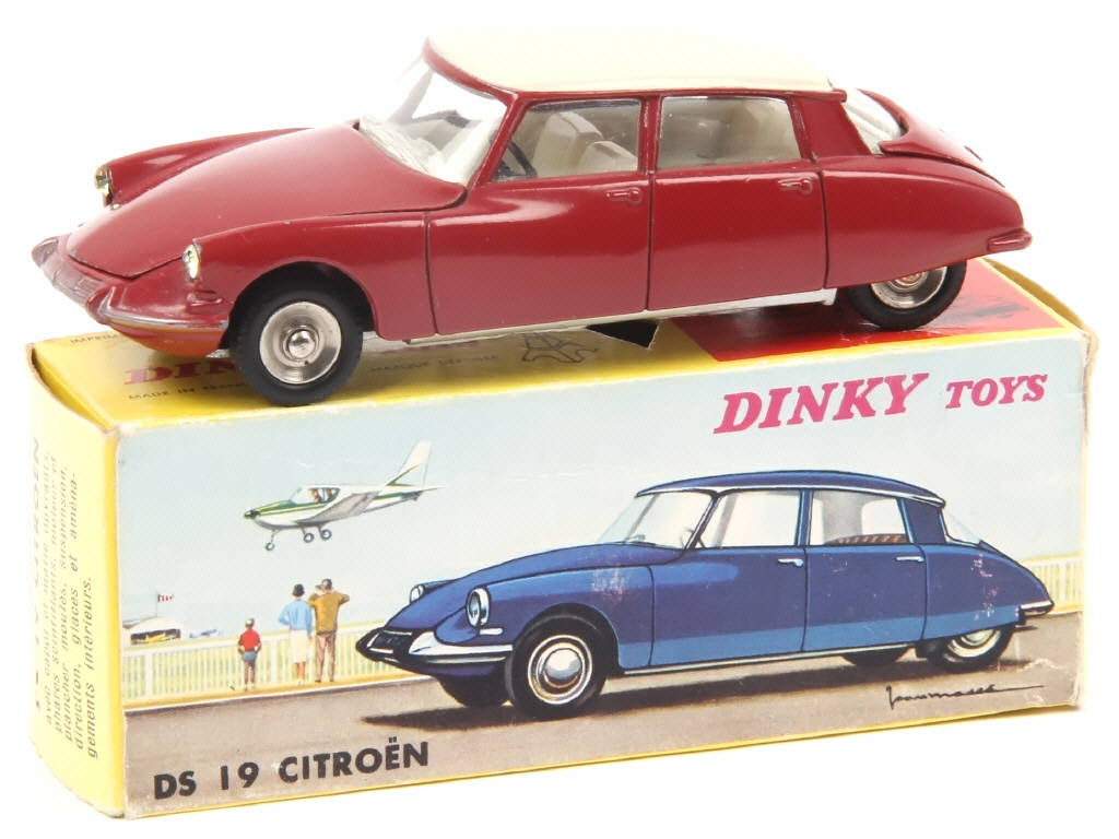 DINKY TOYS (FRANCE) 530 CITROËN DS 19 1964 grenat, toit crème & plancher argenté
