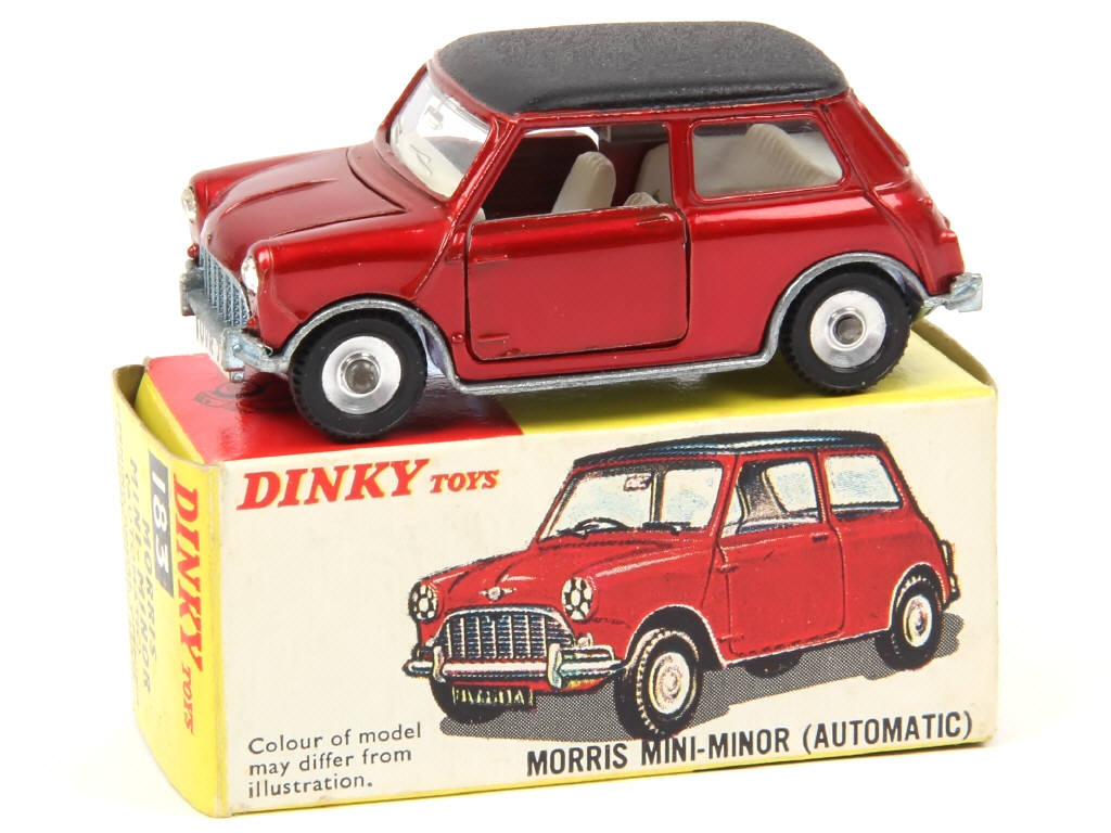 DINKY TOYS (GB) 183 MORRIS MINI MINOR Automatic rouge métal, toit noir